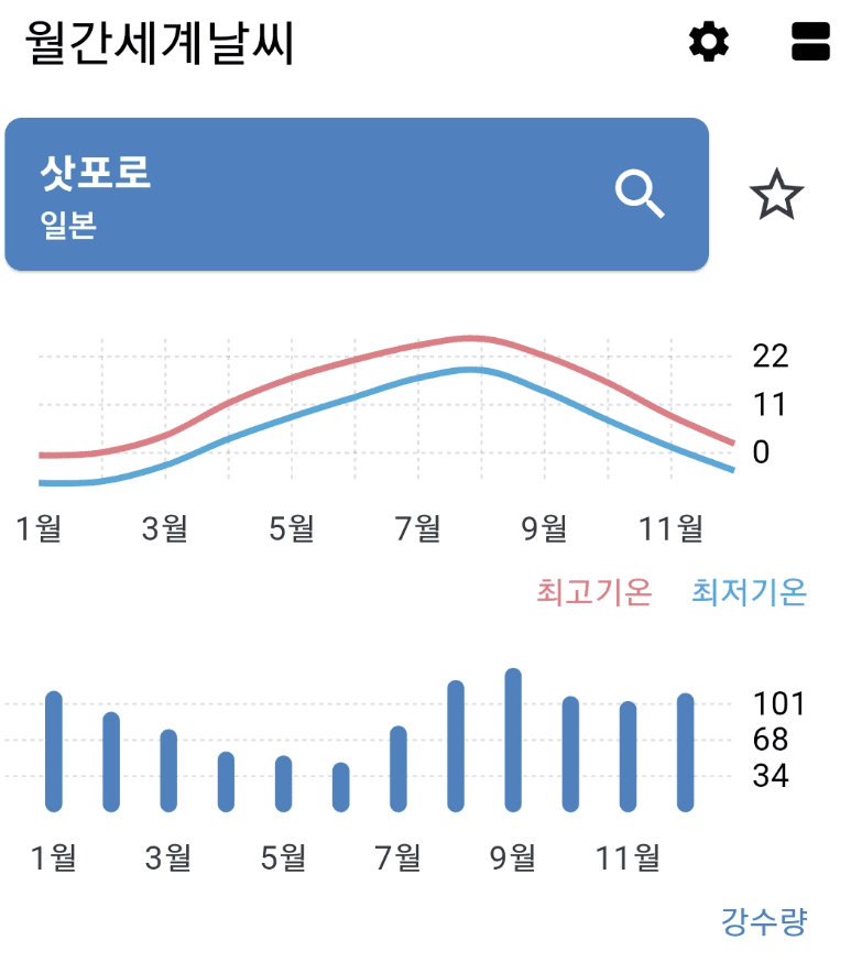 - 삿포로의 연중 최고기온은 8월 26.4도, 최저기온은 1월 영하 7도입니다.