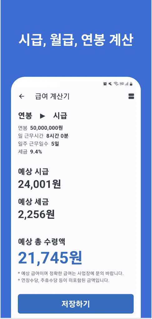 구글 플레이 스토어/앱스토어에 “급여 계산기” 검색 또는 아래 링크 클릭