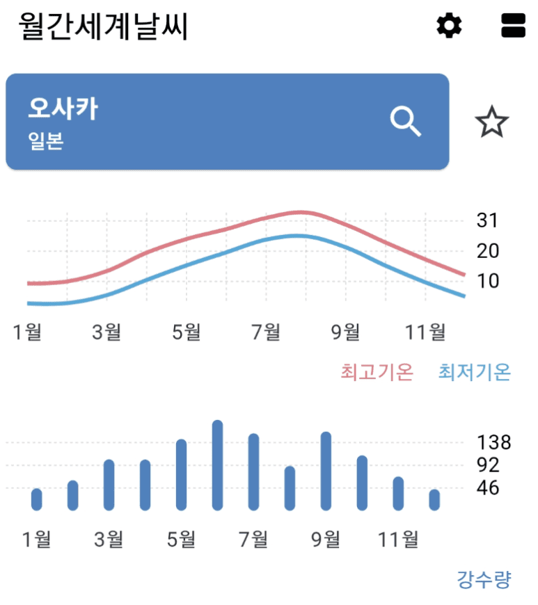 일본 오사카 월간 날씨