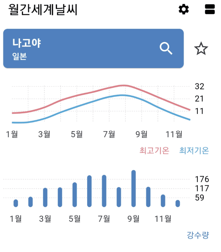 - 나고야의 연중 최고기온은 8월에 있으며 32.8도입니다.